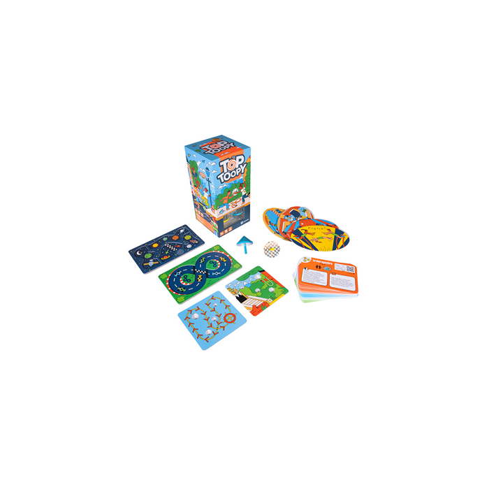 Top Toopy est un jeu d’adresse familial unique en son genre, mêlant spectacle, fun et acrobaties avec des toupies. Accessible à tous grâce à ses 3 niveaux de difficulté, il propose 40 défis à relever, de l'initiation aux figures les plus spectaculaires.
