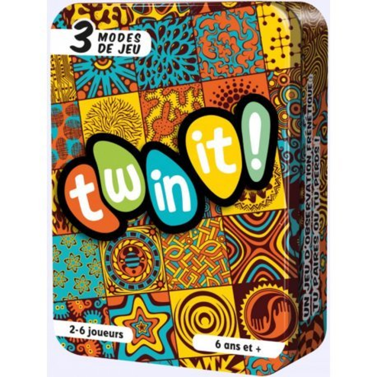 A Twin it, les cartes s’accumulent sur la table en formant une mosaïque colorée. Votre but ? Essayer de détecter plus vite que les adversaires les paires de cartes aux motifs exactement identiques !